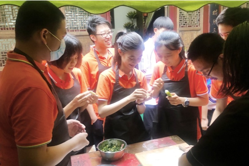 登上鼓楼,同学们了解了古人如何计时报时,还将击鼓表演的视频发送给澳门小伙伴,让他们也感受到鼓声的浑厚有力。在鼓楼广场上,五彩的毽子上下翻飞,铁环发出悦耳的声音,一场妙趣横生的游戏比赛让传统文化焕发别样光彩。同学们手脚忙乱、满头大汗的照片被实时发送到澳门小伙伴的手上,澳门粤华中学的许志健同学倍感新奇,他说,澳门没有这样的趣味游戏,看见北京小伙伴玩得那么开心,也想约上同学,来一场传统游戏大比拼。在胡同里,同学们对老物件充满了兴趣,不时拿起相机拍照,捕捉京味儿的烟火气,感受胡同里北京老百姓的日常生活,并和胡同人家一同包了一桌饺子。