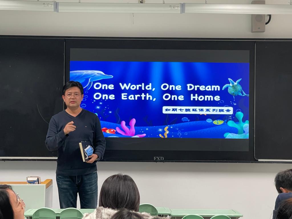本次班会以“One World One Dream, One Earth One Home”为主题,系初2107班环保主题系列班会之一,由初2107班班主任范皖晴设计并实施,经过年级组和年级成长顾问的悉心指导,向年级教师呈现了一堂贴近生活、新颖有趣、精彩纷呈的班会活动。