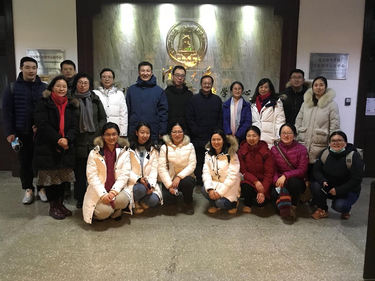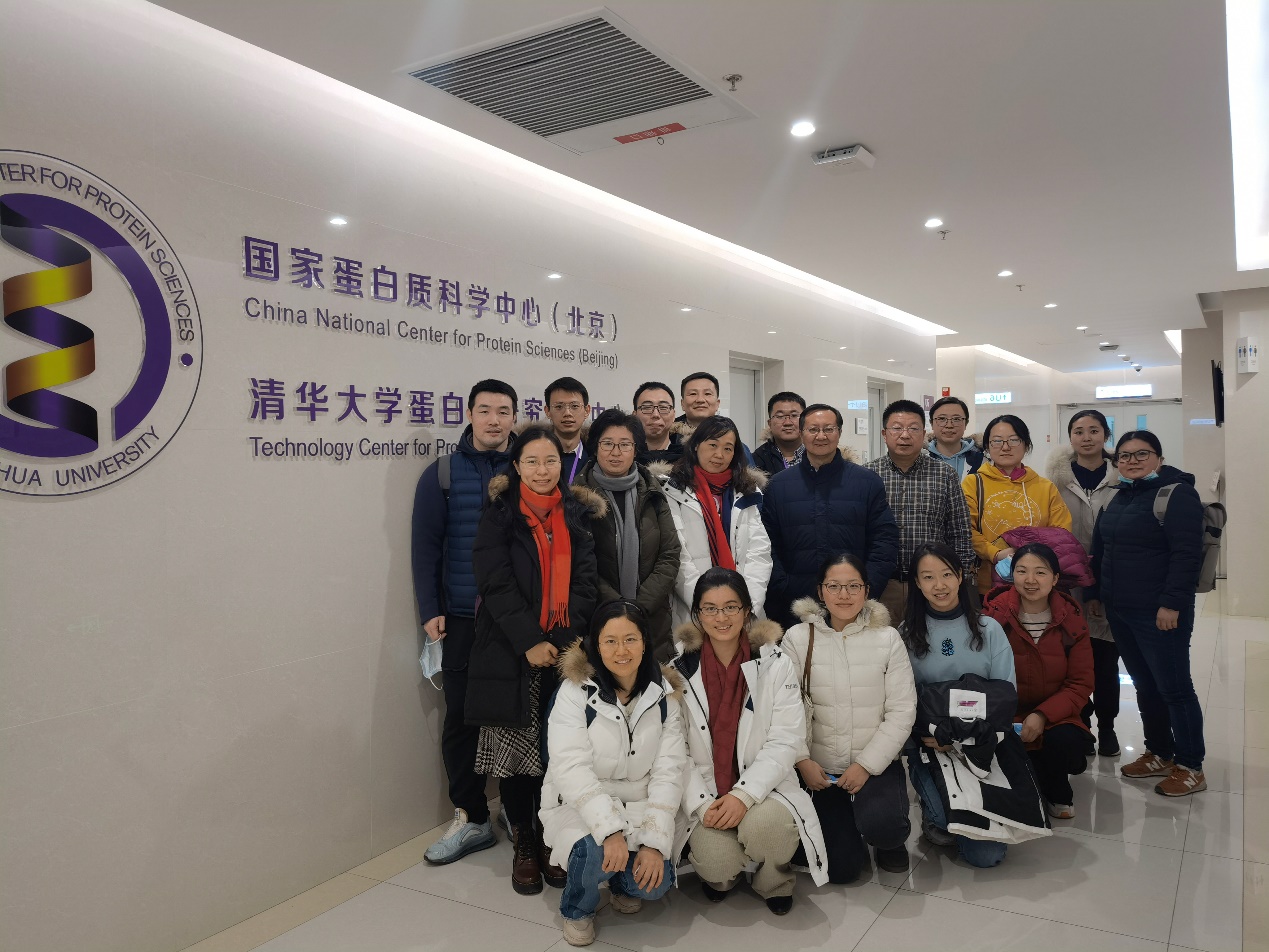 清华大学生命科学院老师与生物教研组在清华大学蛋白质研究技术中心合影