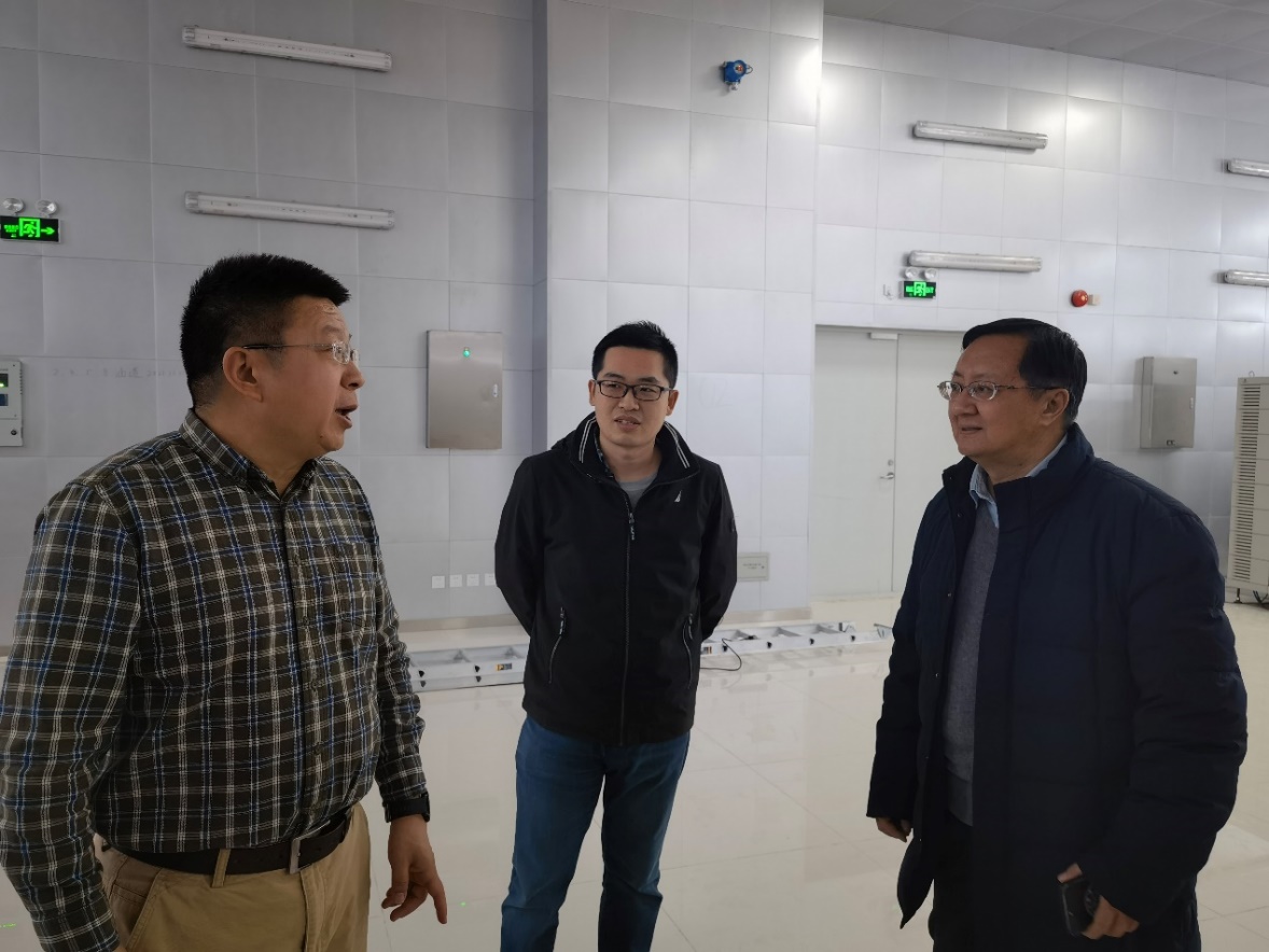 清华大学生命科学院副院长刘栋教授(右)和清华大学蛋白质研究技术中心X射线晶体学平台主管范仕龙博士(左)正在讲解