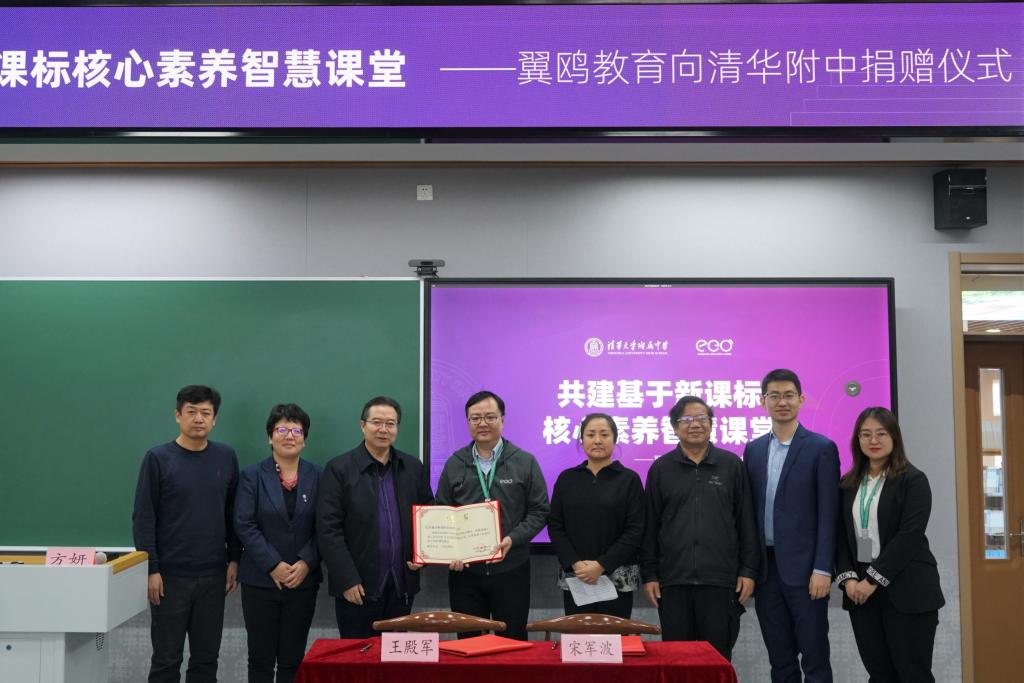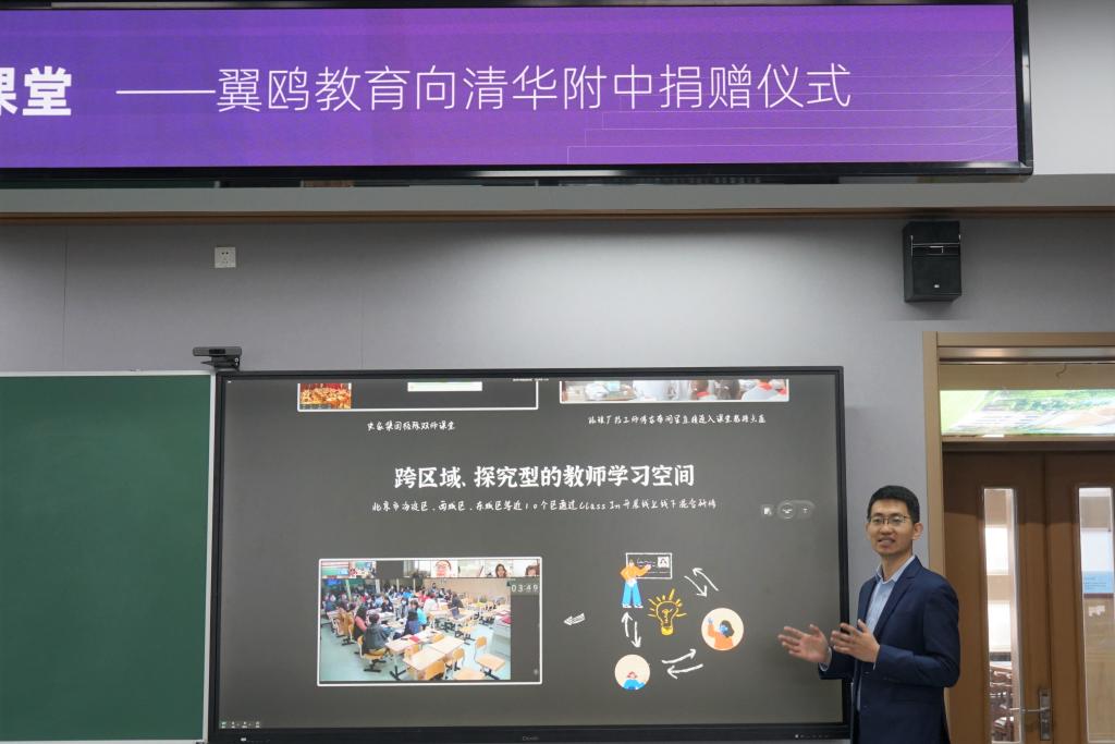 方妍书记简要介绍了在国家大力推进教育现代化大背景下,附中在“技术赋能教育,让教育回归本质”、“技术与教育融合创新”等多方面所作的探索和实践,并代表学校向翼鸥教育的善行表示感谢。