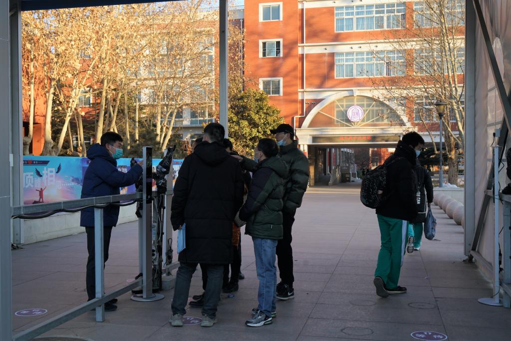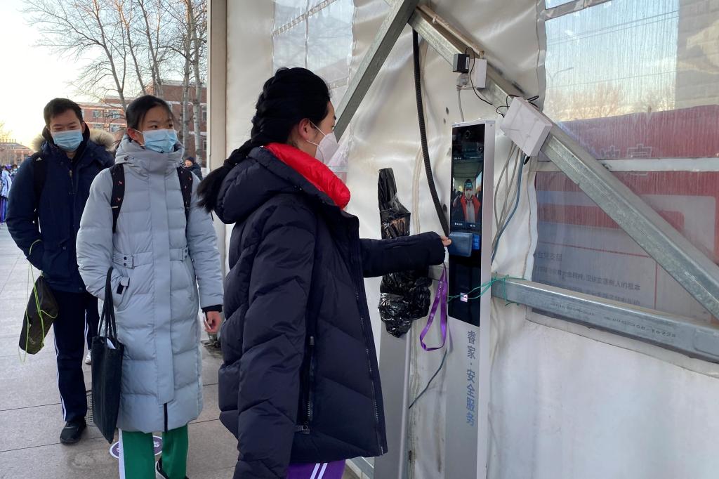 学生们刷卡测温,有序入校