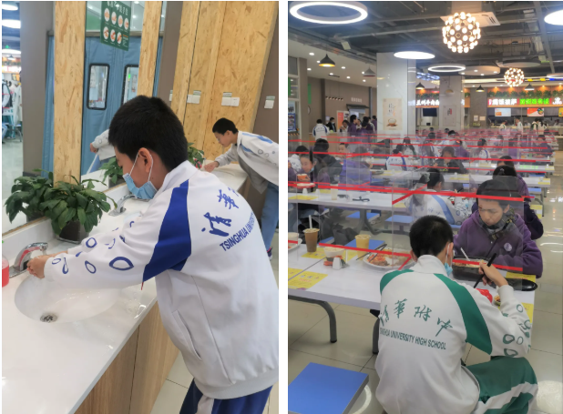 饭前洗手,良好的卫生习惯;间隔就餐,牢记防疫要求