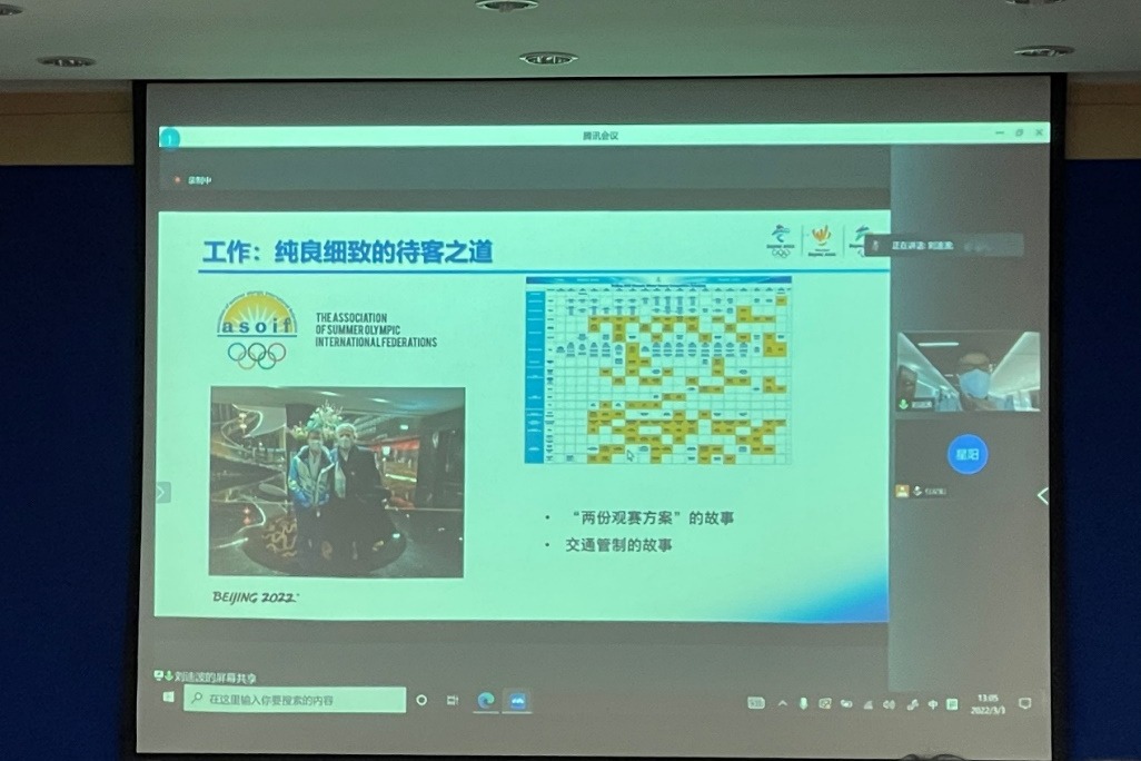 刘迪波学长以习近平总书记对于冬奥会和冬残奥会的志愿者的寄语与期望作为引言,借以国际奥委会主席巴赫先生对于志愿者的赞赏,向同学们展示了每一位志愿者的工作之道,即纯良细致的待客之道。同时,刘迪波学长也通过自己作为奥林匹克大家庭助理服务于Francesco主席的经历,也让同学们深刻了解了这个职务的工作内容、责任使命和担当。他为Francesco先生制作日程表,面面俱到地进行服务和帮助,在双方的相互尊重与交流中成为了一见如故的朋友。这些美好的事件也向同学们深刻表现了身为冬奥志愿者的内涵,用热情,耐心与周到带给宾客春天般的温暖。