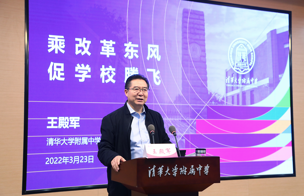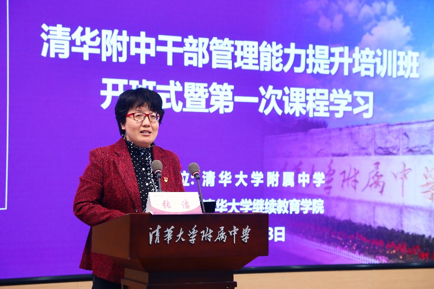 清华大学继续教育学院院长刘震随后致辞。他表示,此次继教学院为附中量身定制了干部管理能力提升培训班的课程内容,旨在通过有针对性的教学,助力附中高质量发展,助力管理者个人能力提升,同时他希望全体学员珍惜此次学习机会,形成终身学习的习惯,学有所思、学有所悟、学有所获、学有所成。