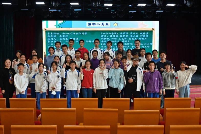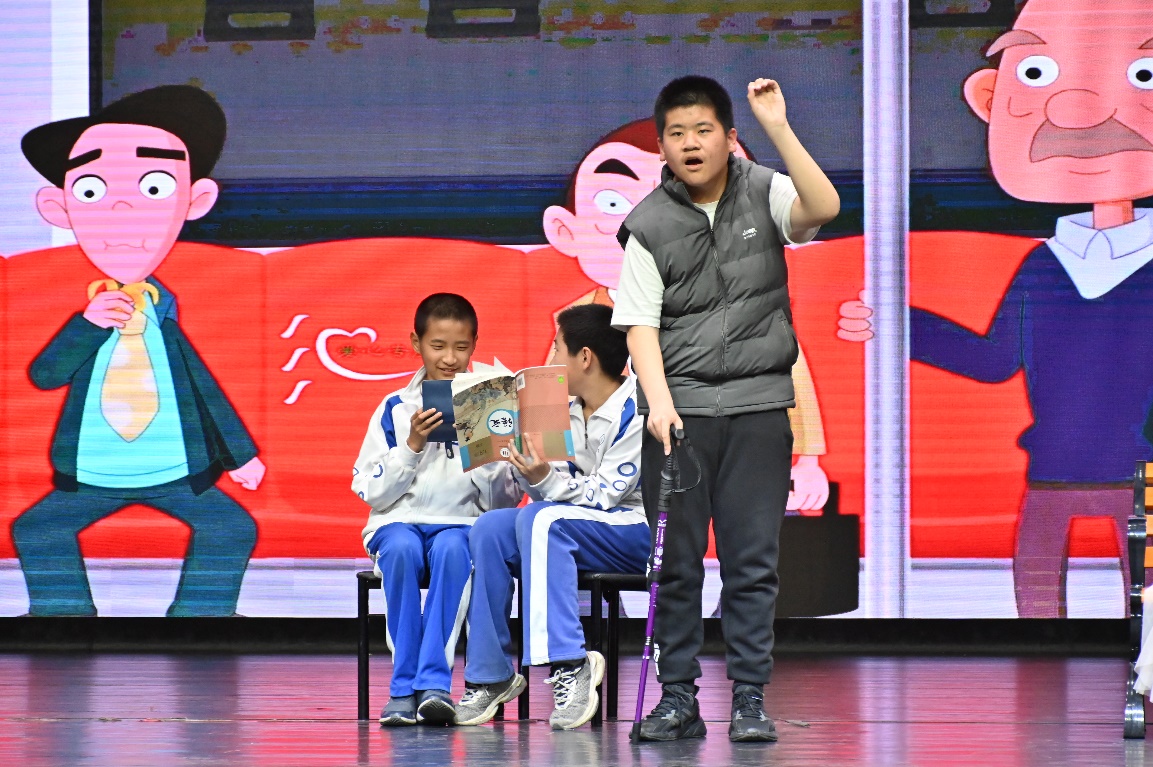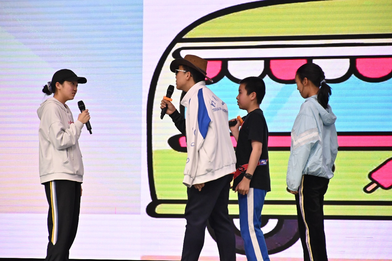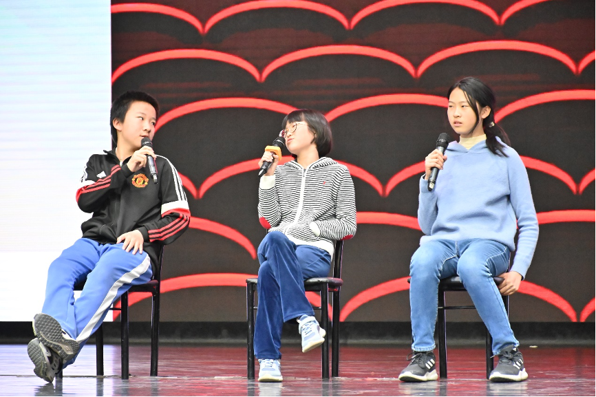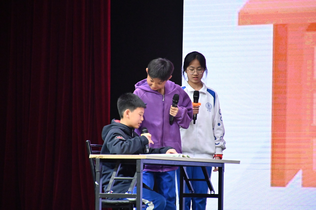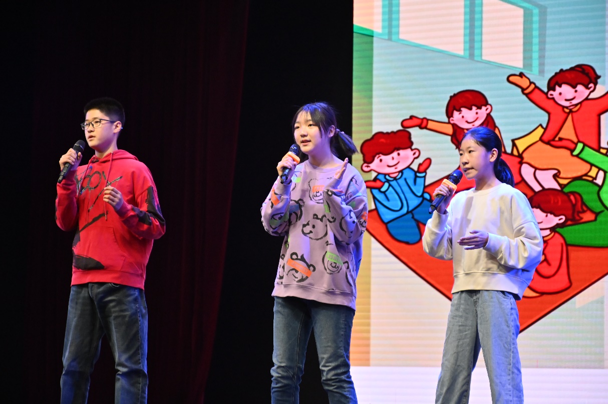初一4班任梓铭、8班郭烨荣、7班陈诗雨演唱自编歌曲