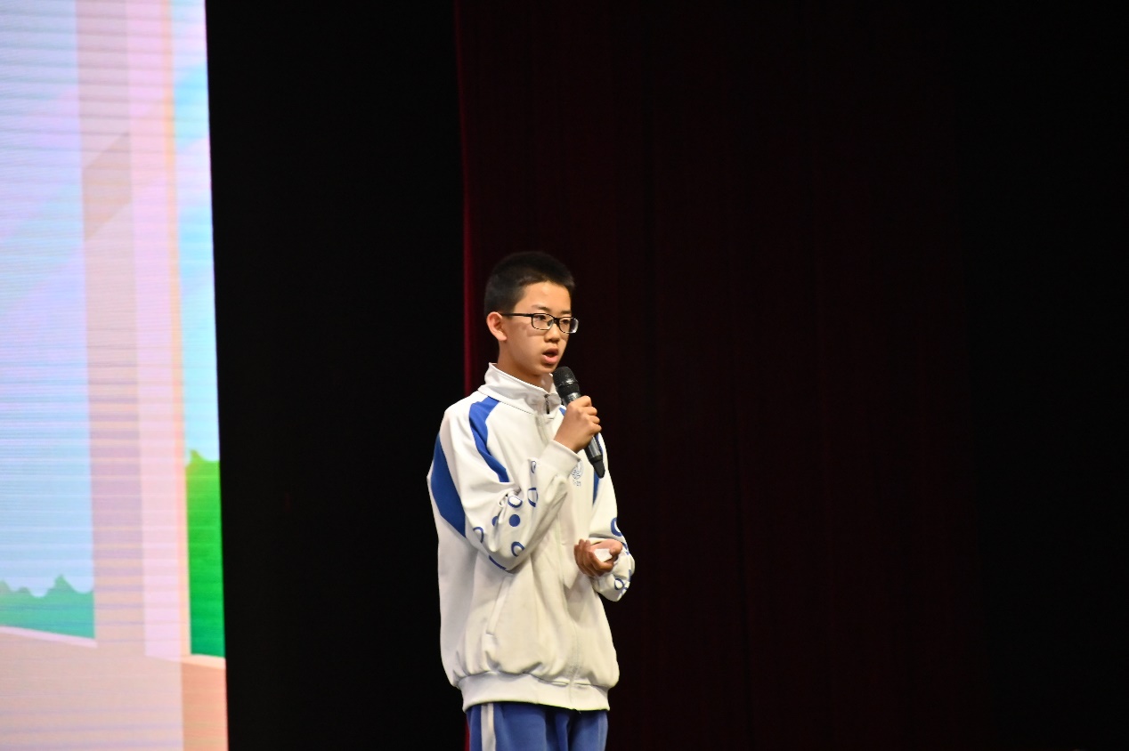 初一8班赵上哲代表班级汇报水木行动