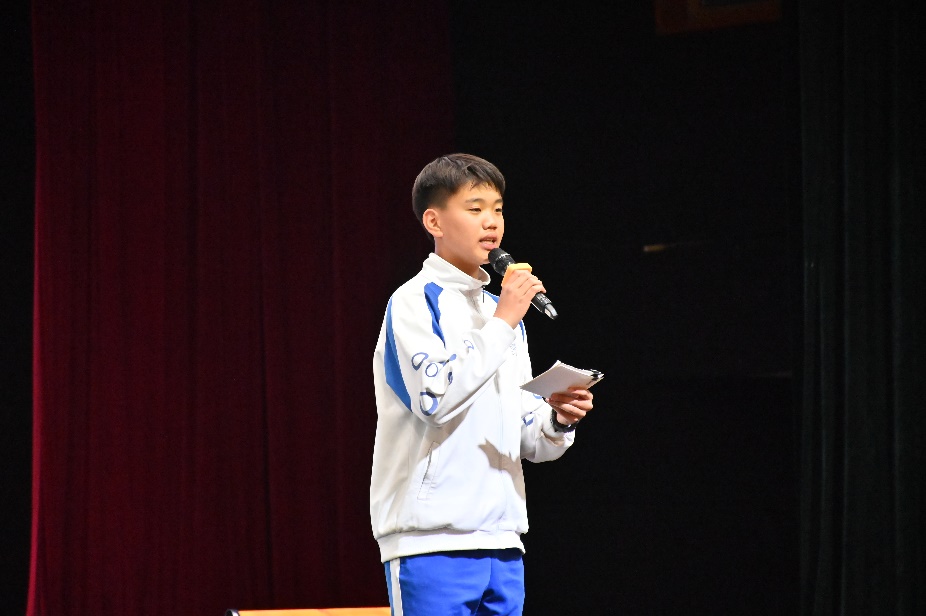 初一4班姚铭禹代表班级汇报水木行动