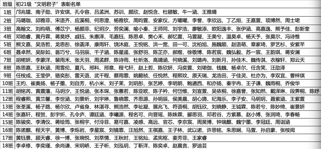 初21级“文明君子”获奖名单