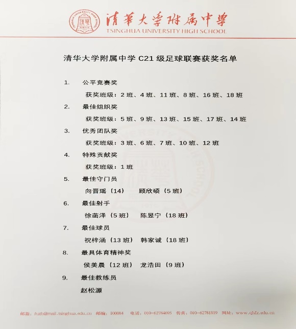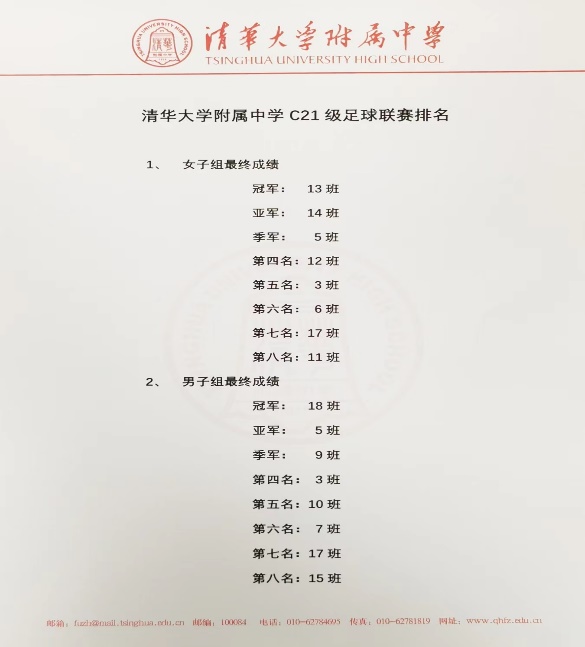 本次比赛响应了国家大力发展校园足球的号召,比赛过程中学生展现了“无体育,不清华”的体育精神与“胜不骄、败不馁“的积极风貌。同学们将把体育赛事的顽强拼搏精神带到学习生活中,强身健体,报效祖国。