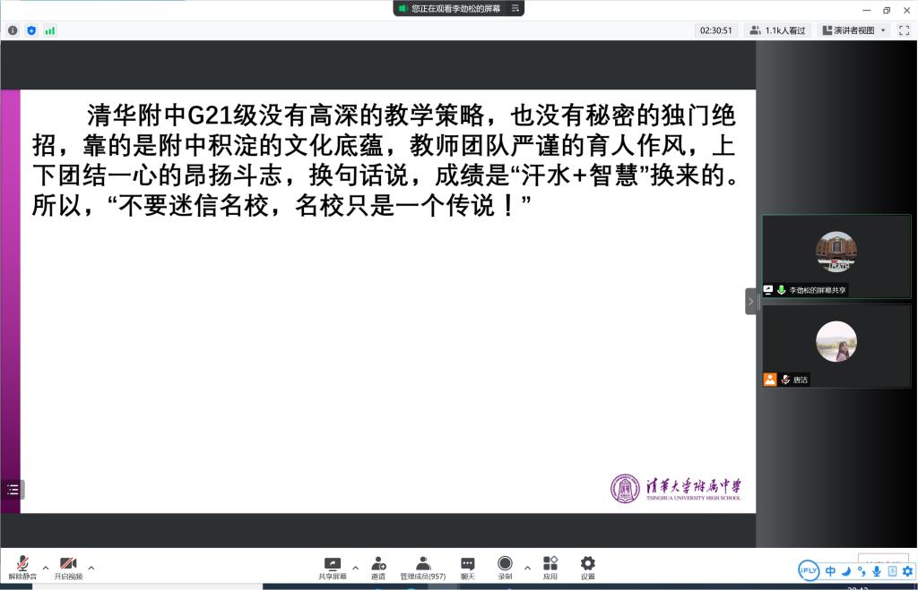2022年5月20日、21日晚,高21级举办期中在线家长会。本次家长会分为年级集体家长会、分班家长会、任课教师点对点交流会三个部分。全体高21级师生及学生家长参与本次会议。