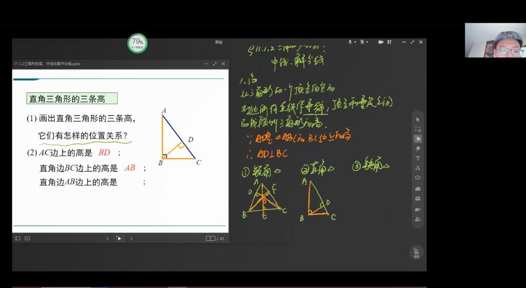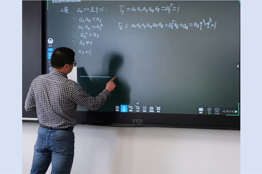 数学教师李新萍运用智慧黑板和腾讯会议相结合的方式为学生云端授课