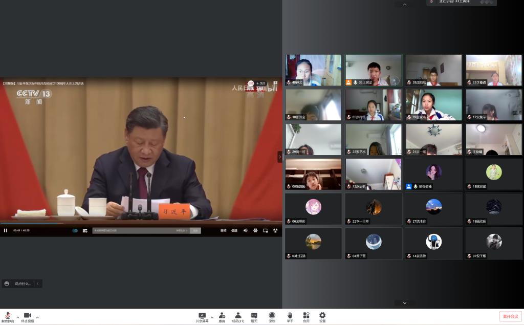 班级组织观看习近平总书记在庆祝中国共产主义青年团成立100周年大会的讲话