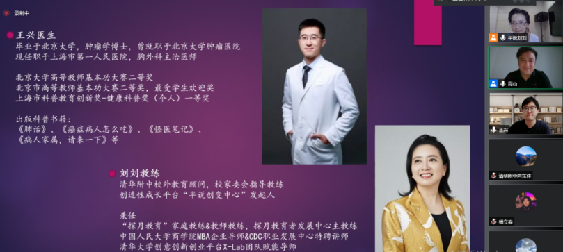 5月27日晚上,皇冠体育工会、皇冠体育校家委会邀请皇冠体育校外教育顾问、校家委会指导教练刘刘老师和上海第一人民医院胸外科主治医师王兴在线为本部及合作学校教职工们做“从职业的全情投入中寻找生命的快乐”的直播讲座。