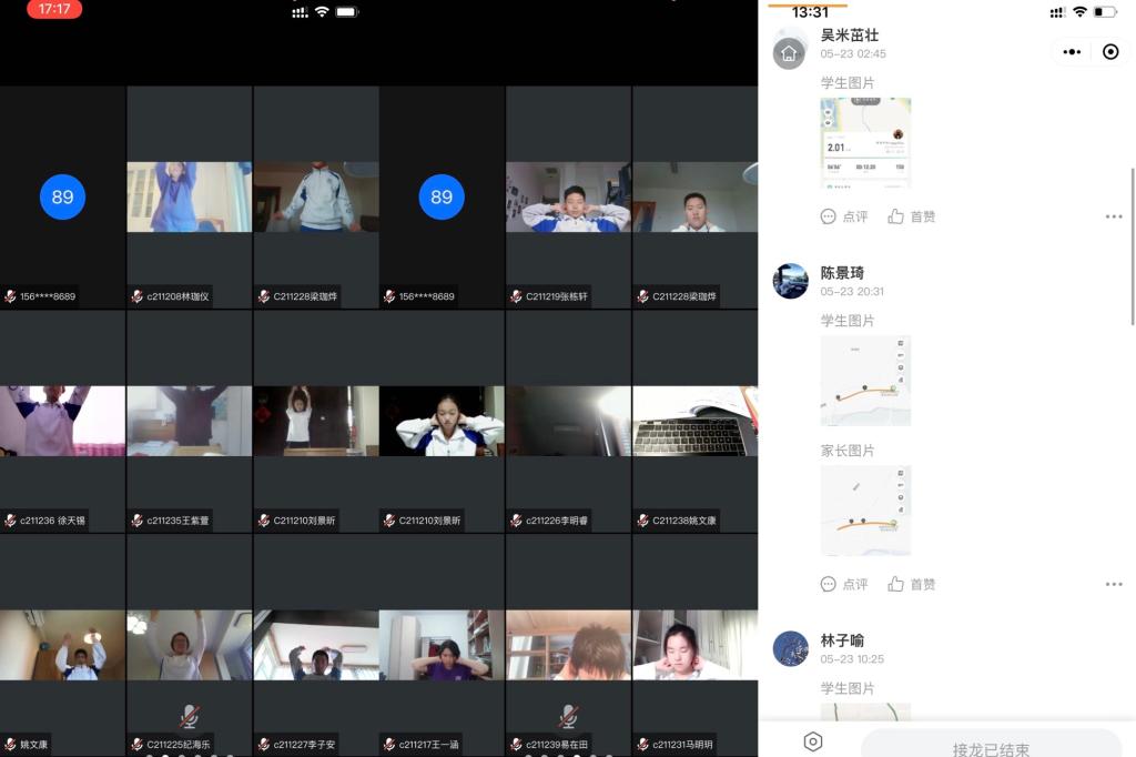 首先,健康居家是居家学习的前提条件。初2103班以小组为单位进行每天的体育锻炼打卡,强身健体。初2105班开展“律动青春”每日云锻炼以及每日云自习活动。初2112班组织“墩墩‘云’奔跑”活动,家长们也热情参与其中,以打卡积分的形式赢取冰墩墩,延续奥运精神。