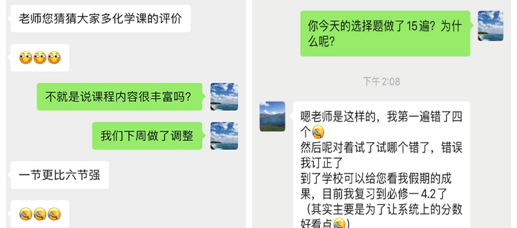 针对以上情况,老师们召开备课组会进行研讨,及时做出调整:加强全天候的答疑解惑,针对学生的高频错点录制每天的作业解析微视频,常昊男老师还主动承担了选择题的文档版详解详析任务,聚焦关键问题,扫除思维盲点,严格控制视频时间,适当减少作业量,降低难度,保护学生学习的积极性,重在落实,避免过载。经过系列措施之后,学生学习感受明显好转。