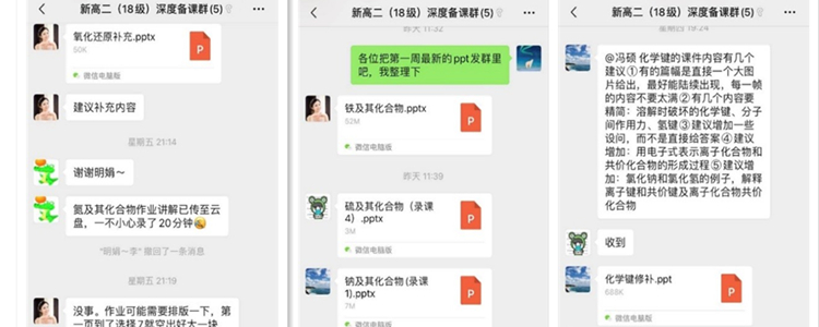 高18级化学备课组明确要求,老师们备好课之后,要把课件和作业提前一周发到群里,除备课组长全面负责外,每节课都指定另一位教师审阅所有内容,反复观看,查找问题,及时提出修改意见。精心打磨,优化细节,大到对内容的删减增补,小到对排版的规范美观,几乎是在用公开课的标准打造每一节课。
