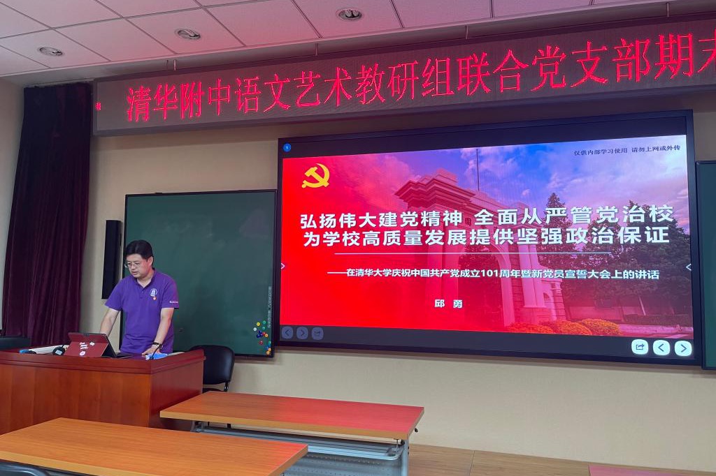 7月14日下午,按照清华大学及附中党委整体工作安排,皇冠体育党委组织在职党支部召开期末组织生活第一次学习。