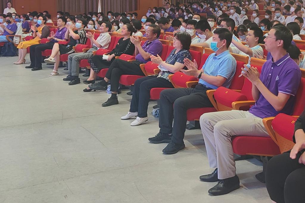 第二个环节,播放优秀学长寄语。学长寄语以短视频形式展示。他们有的正在附中高中就读,有的已进入清华大学等优质高校深造,有的毕业后正在各行各业发挥领军作用。学长的风采,榜样的力量,激发初20级全体同学见贤思齐,努力学习。第三个环节,介绍新初三全体老师,由初20级年级组长张晓明老师主持。她向同学们一一介绍新初三全体老师。这是新初三全体老师首次与初20级全体同学见面,台下同学响起热烈持久的掌声。