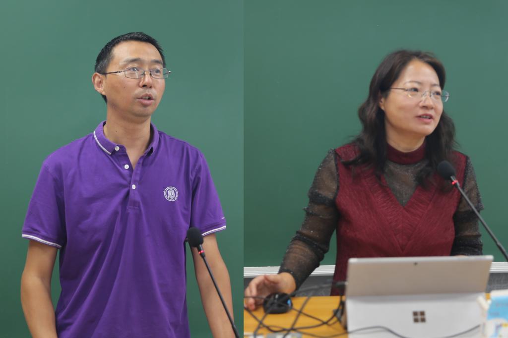 初中德育主任王田(左)高中德育主任李书霞(右)汇报发言