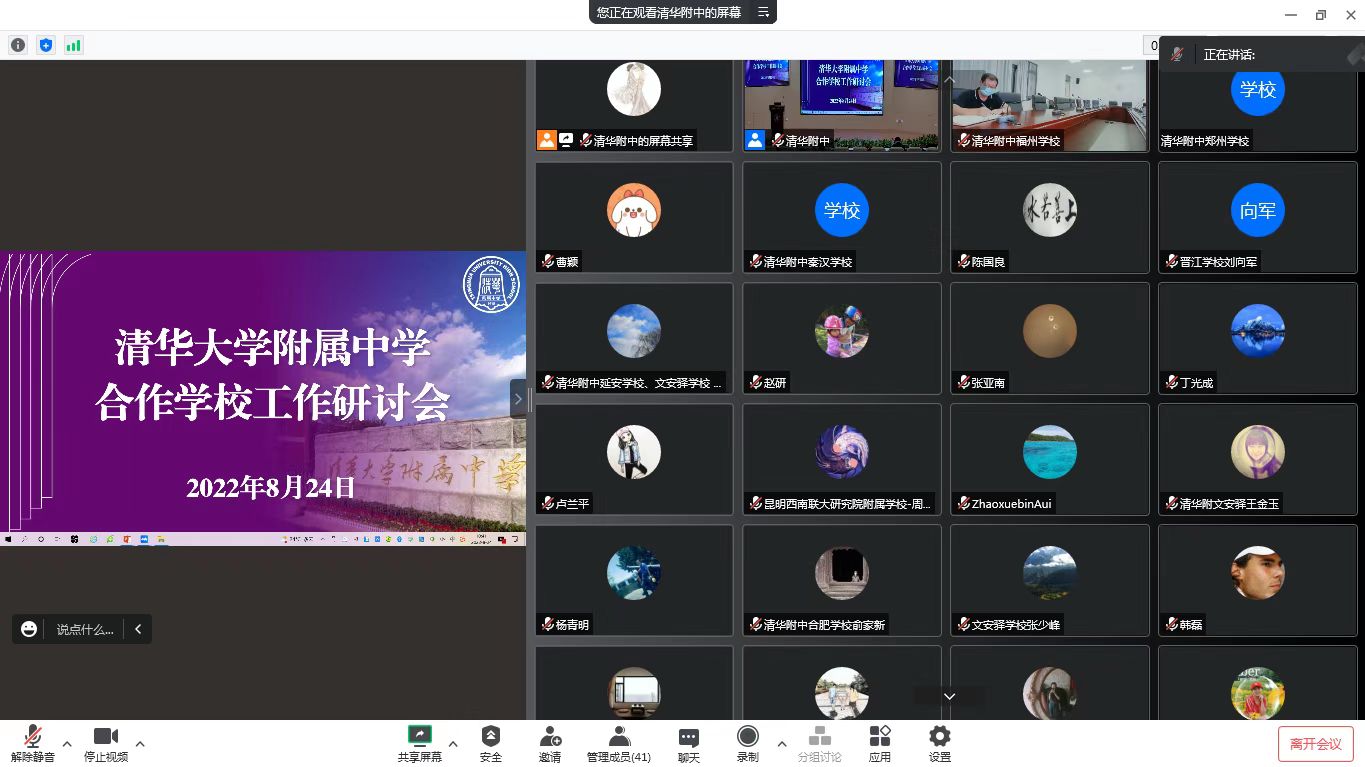 曹海翔评价各合作学校的汇报有认识高度、思考深度、实践力度和情感温度,充分体现了皇冠体育官网人的责任、能力、担当。针对下一阶段发展工作,他指出,合作办学要以清华大学提出的“尊重历史,有序稳妥,实事求是”为根本指示,落实大学巡视整改要求,进一步规范合作校办学体制机制。结合清华大学暑期工作会的会议精神,他提出具体要求。一是贯彻落实中小学校党组织领导的校长负责制,确保方向正确,行稳致远。二是加强顶层设计和战略部署,细化完善管理、指导、监督、考核机制,夯实办学基础,实现内涵式发展。三是统筹本部和合作校协同发展,建立干部队伍培养机制,加强队伍研判,保持队伍活力。四是营造风清气正的政治环境、校园氛围。切实加强教师思想教育与师德师风建设,提高意识形态的风险防范意识,正向引导,确保校园安全、政治安全,以良好的状态迎接党的二十大的召开。
