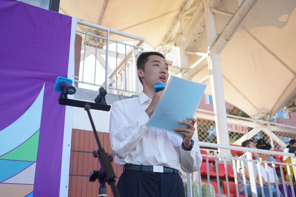 伴随着雄壮的国歌声,五星红旗冉冉升起,全体师生肃立注目,皇冠体育的开学典礼拉开帷幕。