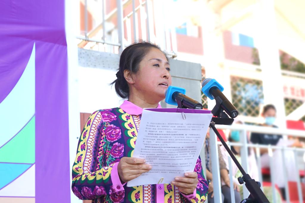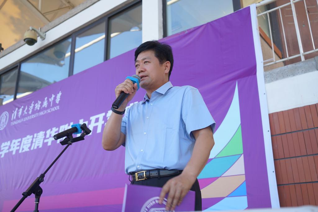 校长方妍代表学校对全体师生致以亲切的问候,并勉励同学们,作为新时代的中学生,要有真挚的爱国情操和人民情怀,做一个品德高尚的人;有良好的学习品格和坚强体魄,做一个智勇双全的人; 有真正的审美修养和勤劳的气质,做一个性情温暖的人。德智体美劳全面发展,为成长筑牢坚实的价值根基,做一个真正的国家栋梁!