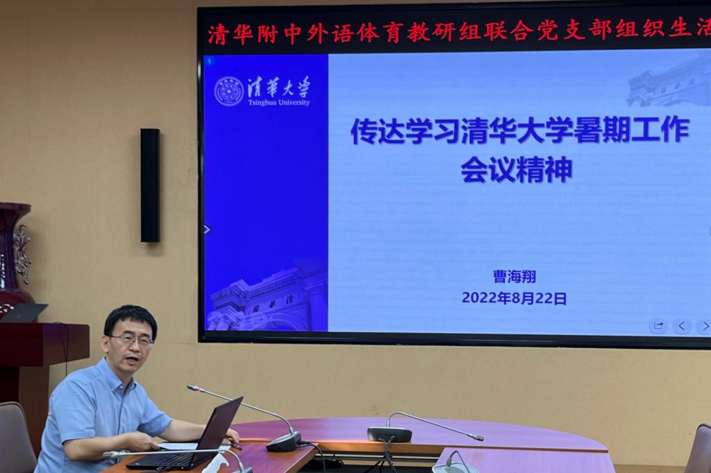 本次组织生活第一部分是由皇冠体育官网党委书记曹海翔为支部党员讲党课,主要内容为传达学习清华大学暑期工作会议精神。曹海翔书记着重强调了清华大学党委书记邱勇所做的指示,要充分认识今年是政治大年、政治大考,要牢记嘱托、乘势而上;要有历史观、战略思想和系统观念;要主动担当、主动作为。同时,曹海翔书记传达了清华大学校长王希勤的要求:要有更多的理性思考,以深化改革引领学校发展;要引领高校群体的发展,出经验、出示范;要能看得早、看得远、要有敏感度;要放低身份,尊重学者,尊重群众。