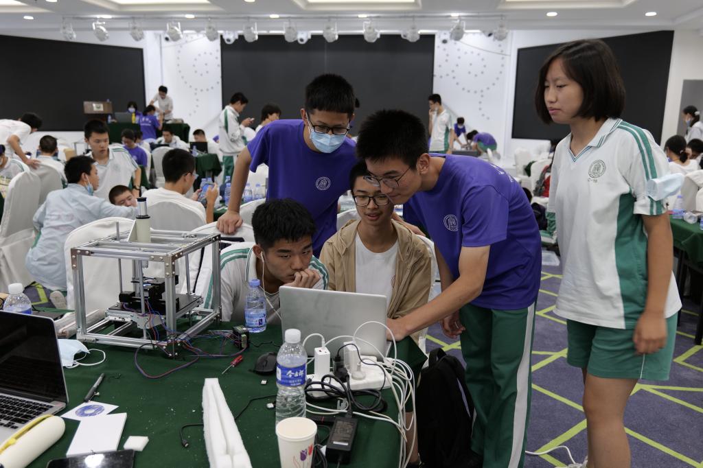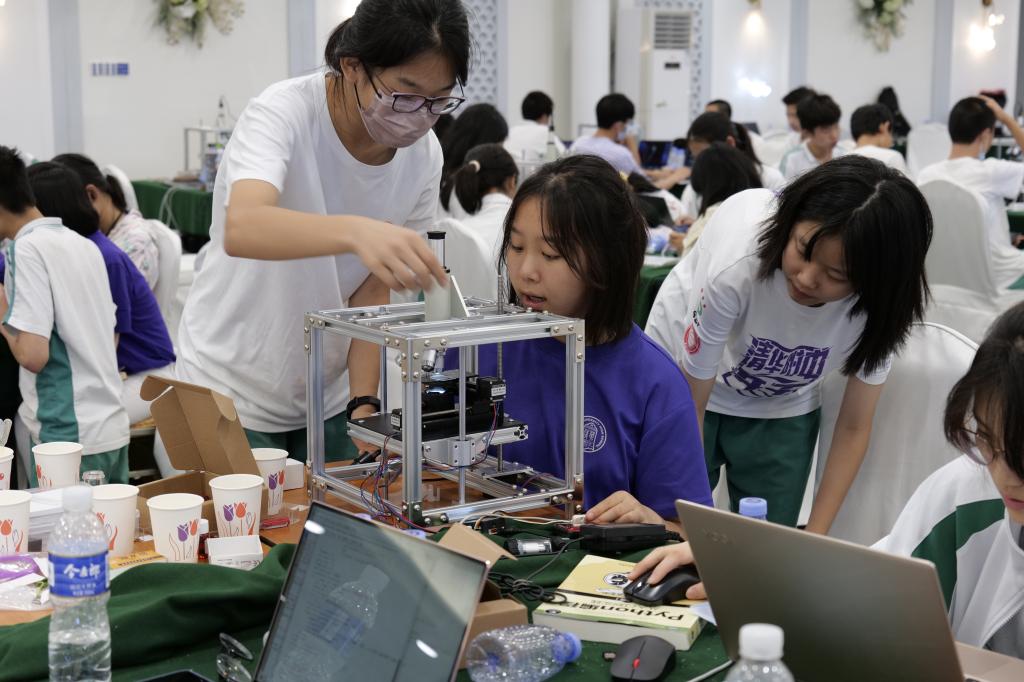 创客马拉松中,初19学生全神贯注组装显微镜硬件