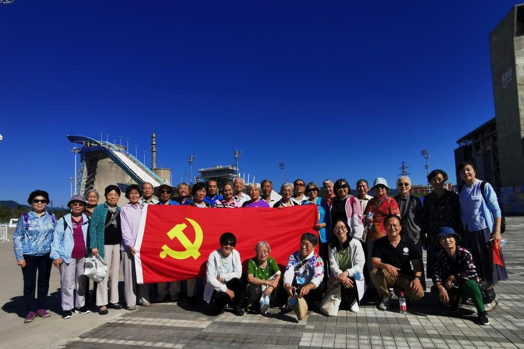 离退休党员们来到了首钢滑雪大跳台。蓝天、白云、流线型赛道,冷却塔……刚与柔在这副画面里巧妙融合在一起,老师们被这副壮观而美丽的图画吸引住了,仿佛又看到了北京冬奥会上谷爱凌、苏翊鸣一飞冲天的激动时刻,仿佛国歌又回响耳畔。滑雪大跳台是清华建筑学院院长张利教授带领团队设计完成,作为清华人,我们为他们感到骄傲和自豪。滑雪大跳台将永久保留,作为国内外比赛的场地,奥运精神也将成为激励我们奋进向上的动力。