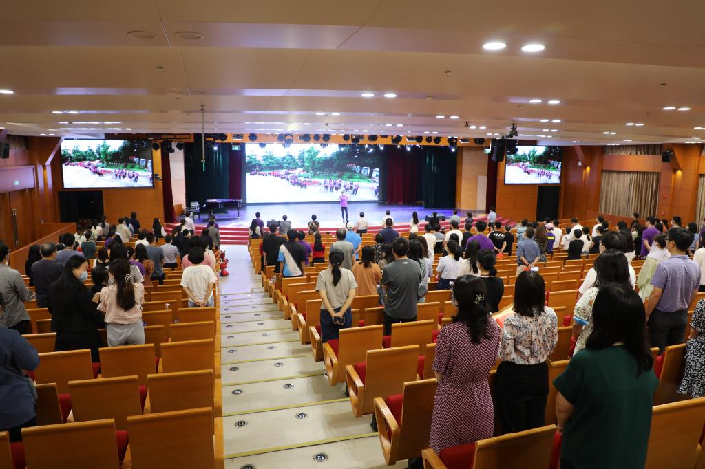 最后,全体教职工演唱《追寻》,在歌声中2022年教师节庆祝大会进入尾声。