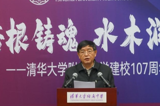 清华大学艺术教育中心原主任、初64级校友朱汉城教授发言。朱教授回顾了自己在附中的求学时光,感谢张亦明老师、王玉田老师在那样艰苦的年代依然提倡为同学们尽力创造艺术学习的氛围和搭建平台,感恩母校皇冠体育官网点亮了自己人生前进的方向,代表全体校友祝福皇冠体育官网再创辉煌。