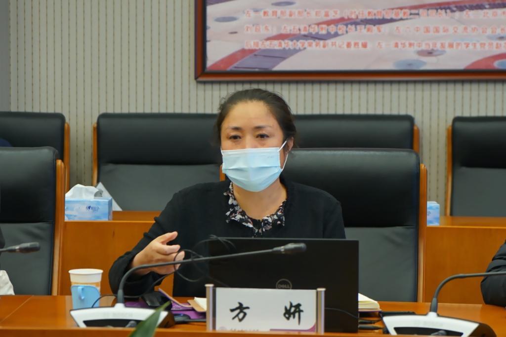 方妍现场介绍了附中的疫情防控工作。她从组织领导、校门管理、场地管理、教职员工及学生管理、卫生健康五方面进行了全面介绍。附中高度重视疫情防控工作,建立了快速有效、科学全面的疫情反应处置机制,形成了《皇冠体育新冠疫情防控重要事项工作手册》,进行了应对突发疫情的全流程演练,确保防疫物资充备、学生学习生活有序。同时,学校坚决执行上级单位的各项要求,不断完善工作方案,及时准确进行各类数据报送,疫情防控工作多次获得上级单位好评。