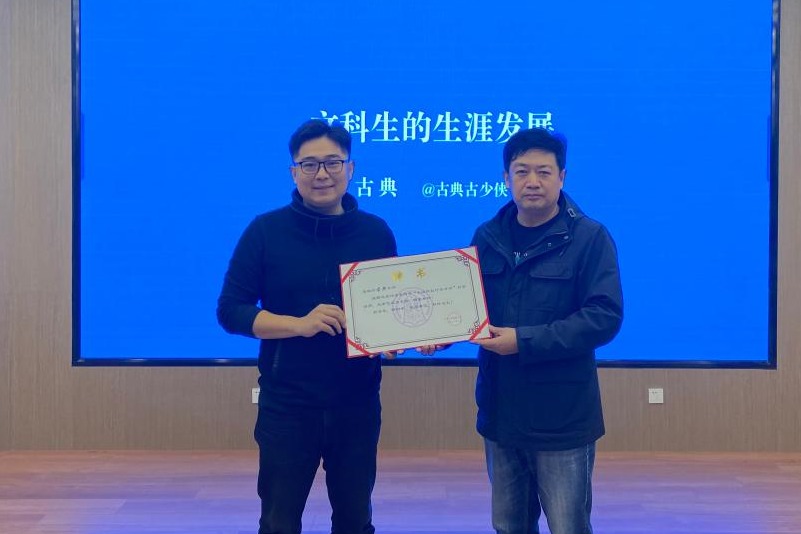 在充分认知文科的特点后,古典老师根据自己对时代发展的理解和预判,总结概括了新一代青年未来需要具备的核心竞争力与核心素养,分别是:有品位、会讲故事、整合与跨界、理解情感、会玩、追寻意义。在此,他呼唤同学们培养自己“人的技能”,鼓励同学们做“有品位也有人味、会讲故事能跨界、在热爱地领域努力地玩”的人。最后,古典老师分享了自己对教育的看法,并以爱因斯坦答年轻人的故事作为本次讲座的结尾。