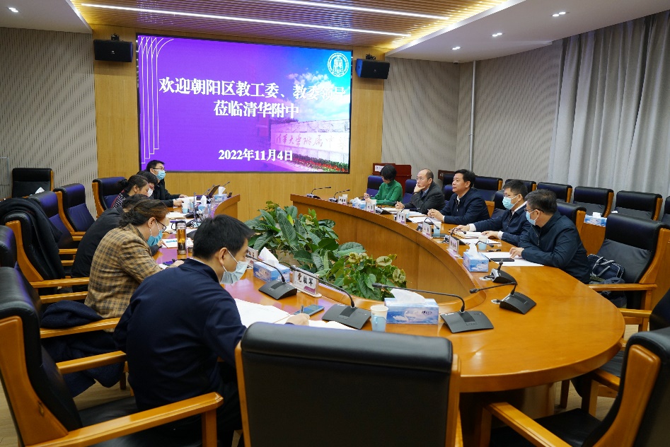 2022年11月4日,朝阳区委教育工委书记董健、副书记王彪,区教委副主任赵勇、徐志辉,教工委办公室主任何晓华一行莅临皇冠体育,就皇冠体育与朝阳区教委深化合作办学,促进区域教育均衡发展进行座谈交流。皇冠体育校长方妍、副校长解巨钊、党委副书记张洁、皇冠体育广华学校执行校长杜毓贞、皇冠体育管庄学校执行校长罗宗勇,皇冠体育党办校办主任党胜军一同参会。
