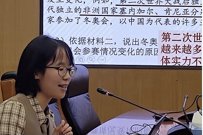 首先,初三备课组的李帅老师讲解中国冰雪活动相关题目。题目需要调动多种能力,如准确概括材料、结合课内知识点分析、置于历史情境中综合思考等,应夯实学生知识基础。
