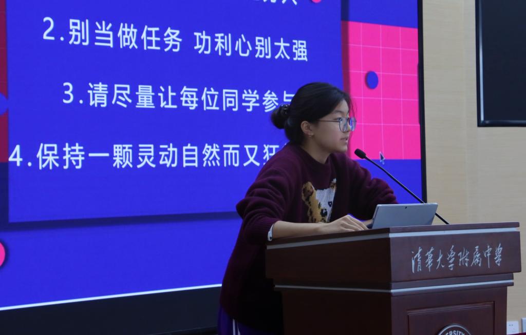 本次经验分享会有幸邀请到了第十八届纪念“一二•九”革命历史短剧展演的最佳女主高2103谭崇熙和最佳导演高2111何若谷。她们分别向学弟学妹们分享了能够取得优异成绩的原因及必要条件,还有组织活动过程中的心得,如导演心态调整、编剧侧重考虑方向、后台对舞台演绎过程中设备的调控使用等策划方向和技术问题,同学们获益匪浅。