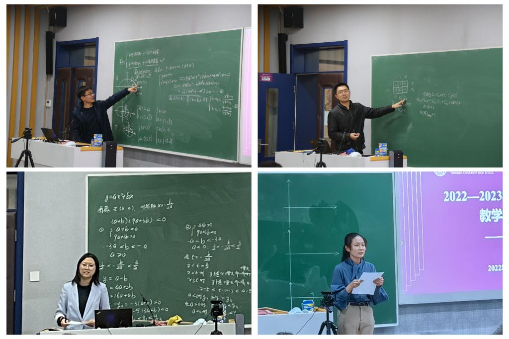 数学教研组开设解题大赛和讲题大赛两个环节。第一轮解题大赛数学组全体青年教师参赛,试题贴近中高考难点;解题大赛优秀选手参加第二轮讲题大赛,通过现场抽题,15分钟讲题设计准备,进行10分钟的计时讲题。通过本次大赛,夯实数学教师的学科底蕴,提升了青年教师的解题业务水平和授课专业能力。