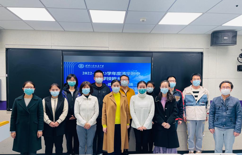 政治教研组以中高考试题解题和讲题的形式开展。参赛教师入场后首先抽取试题并现场解题20分钟,随后进入说题过程。参赛教师从附中学生学情出发,讲述解题方法、分析试题特点、揭示学科思想,最后回归教学策略,重点将高中政治“政治认同、科学精神、法治意识、公共参与”和初中道德与法治“政治认同、道德修养、法治观念、健全人格、责任意识”的学科核心素养落到实处。