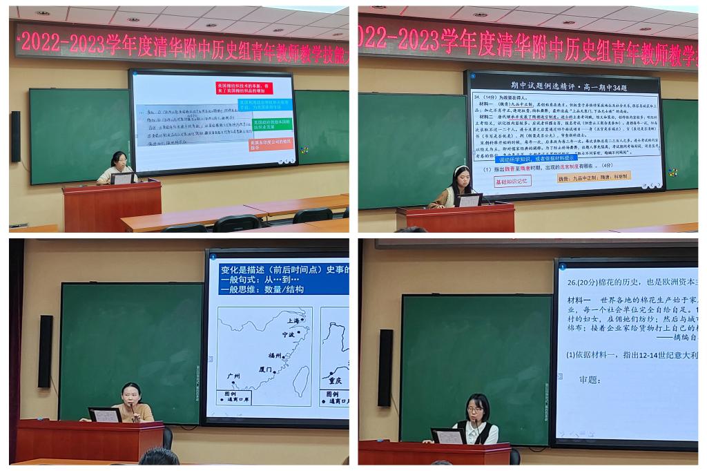 历史教研组开展期中试题例选精评。初中组参赛教师从出题意图、题目解析、学生作答情况以及教学反思这四个方面进行讲评;高中组参赛教师从试题对学生的知识要求和能力要求方面进行切入分析。通过细致的讲评和分析,展现了历史组教师丰厚的学养和谨教研学的态度。