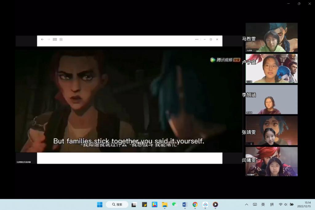 12月13日下午,本次配音大赛以腾讯会议直播的形式拉开了帷幕。大赛邀请到了8位专业评委以及特邀嘉宾特级教师王英民老师。比赛现场以抽签形式决定代表班级参赛的小组。同学们个个实力强劲,口语纯正、感情充沛,表演惟妙惟肖,堪称一场精彩的英语视听盛宴。最终,比赛最终评选出多个团体奖项、个人奖项、以及优秀海报奖。