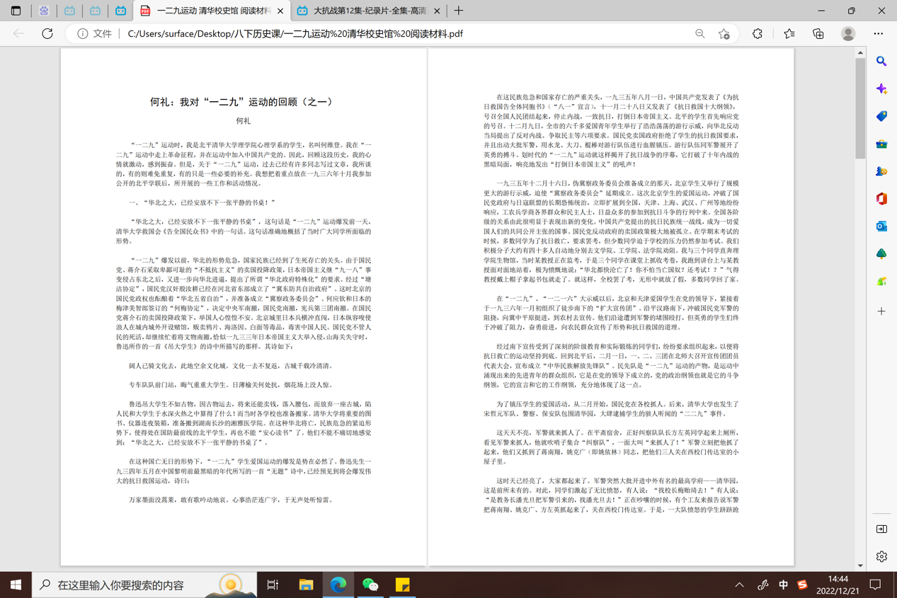 利用电子图书资源组织学生阅读《一二·九运动回忆录》