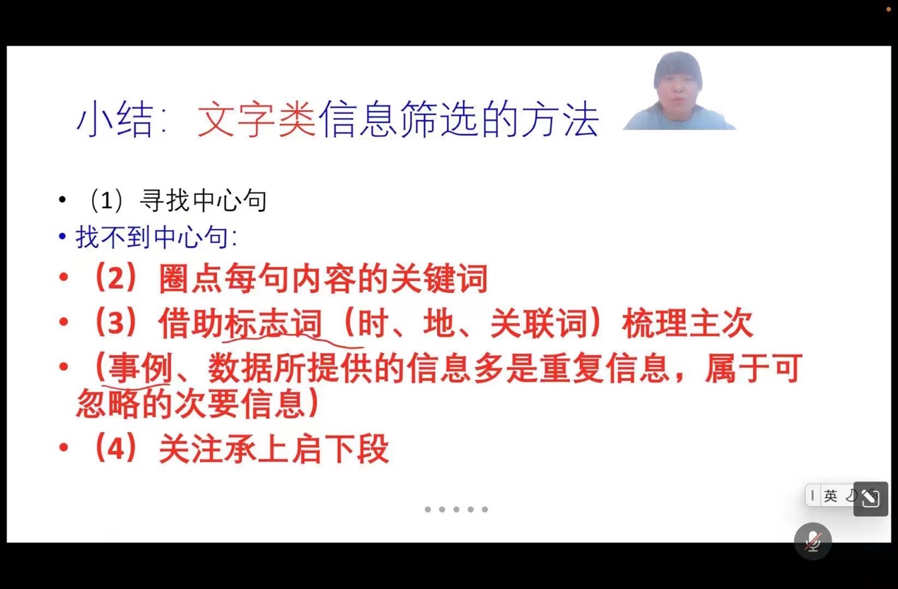 生物高祺老师在生物习题讲解过程中,通过共享软件内屏幕,同时关注学生摄像头中的学习状态,在聊天区进行的提问与发言。在习题讲解中,使用标记工具分析题干中重要信息,掌握做题技巧。在学生回答问题过程中,使用腾讯会议的互动批注功能,与学生充分互动,提升网课的互动性以及交流的有效性。