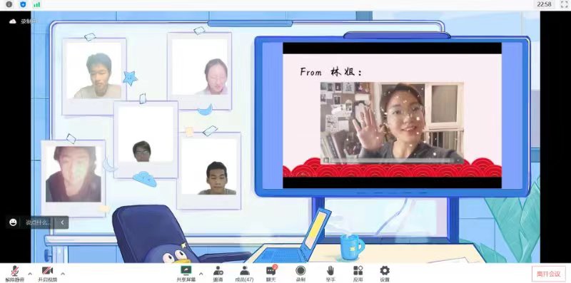 有的班级做了许多前期工作,请同学们总结回顾自己这一年中最难忘的瞬间,将自己的心境起伏与同学们分享。还有班级制作了许多关于班级同学的小竞猜,用ppt展示关于班级同学的冷知识。同学们可以随时开麦克风或者在聊天区留言参与活动,这使得联欢会的气氛充满了温情与欢乐。