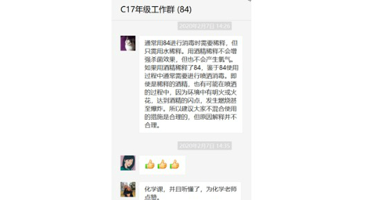 最好的教学就是“不愤不启,不悱不发”,在学生有疑惑的时候,我们始终都是积极地、及时地“解惑”。另外,我们还做了一些与家长沟通的工作,许多家长突然接受孩子的学习指导,可能方法不妥当,可能面对问题的时候非常焦躁,这时候相信他们最需要老师的一点指点、信任和鼓励。和家庭一起给初三毕业生创设一个安全、舒心的学习空间,一起做好线上学习的内外支持。