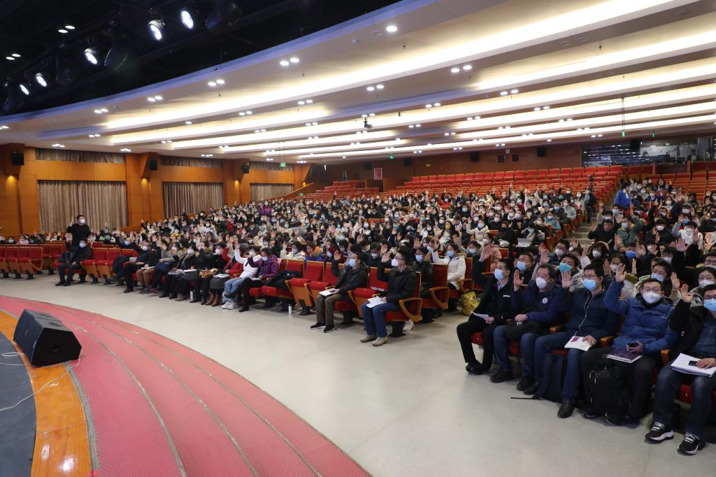2月10日上午8:00,皇冠体育第十二届第一次教代会暨工会会员大会闭幕式在报告厅举行。附中本部和奥森将台路校区全体教职工共600余人参加会议。党委书记曹海翔主持会议。