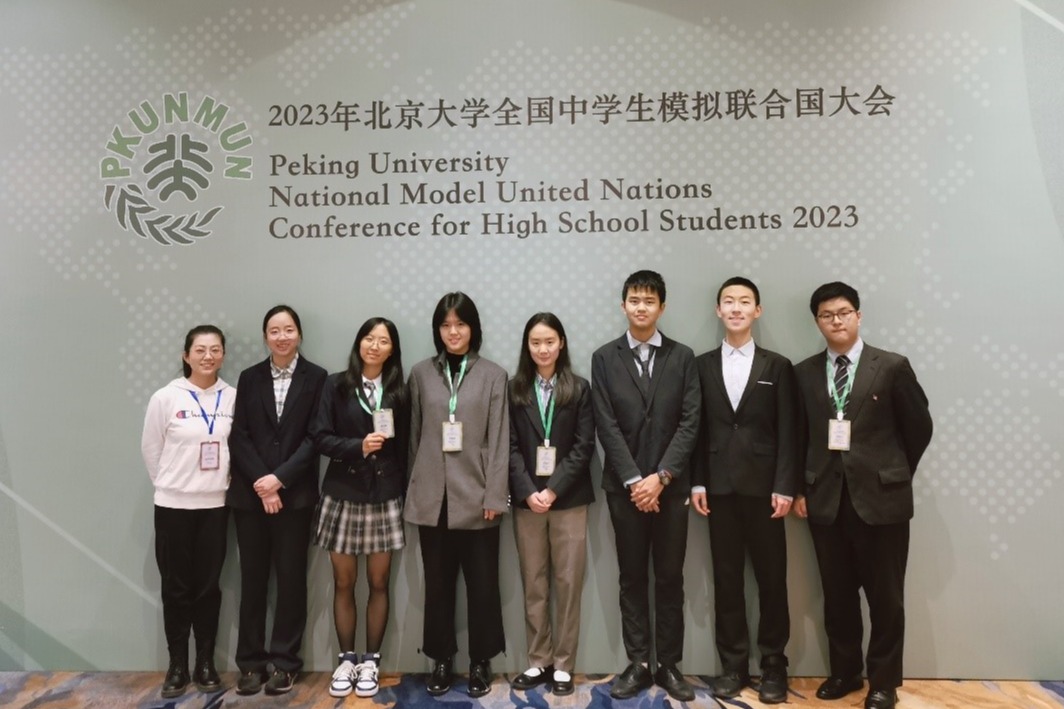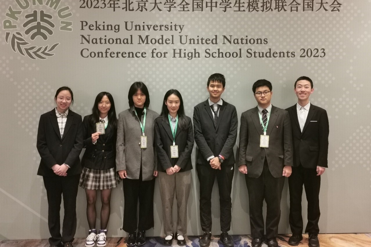 2月9日至12日,2023年北京大学全国中学生模拟联合国大会在苏州顺利举办。在詹玉月老师的带领下,皇冠体育官网高22级钱俊旭、杨灵畅、田倍宁、王骁禹、张嘉艾、徐楷欣与高21级李依宸7名同学组成代表团参加了为期4天的会议。皇冠体育官网代表队在本次大会上再次彰显了皇冠体育官网学生的卓越风采和优秀学术水平。田倍宁获得杰出代表奖,杨灵畅、李依宸获得Best Style(最佳风采奖),王骁禹获得最佳会议推动奖,张嘉艾、徐楷欣、钱俊旭获得最佳会议准备奖。