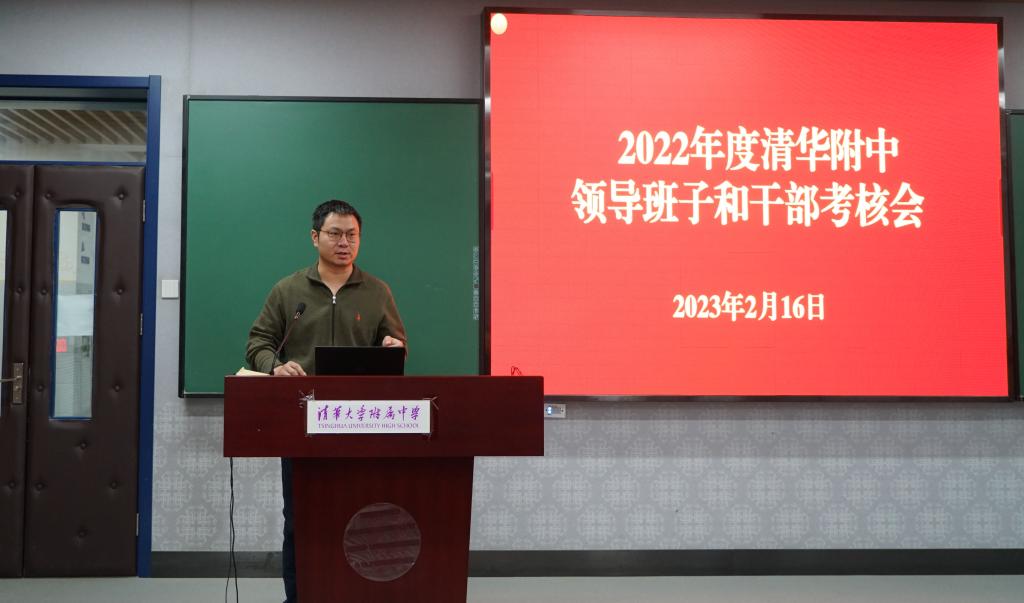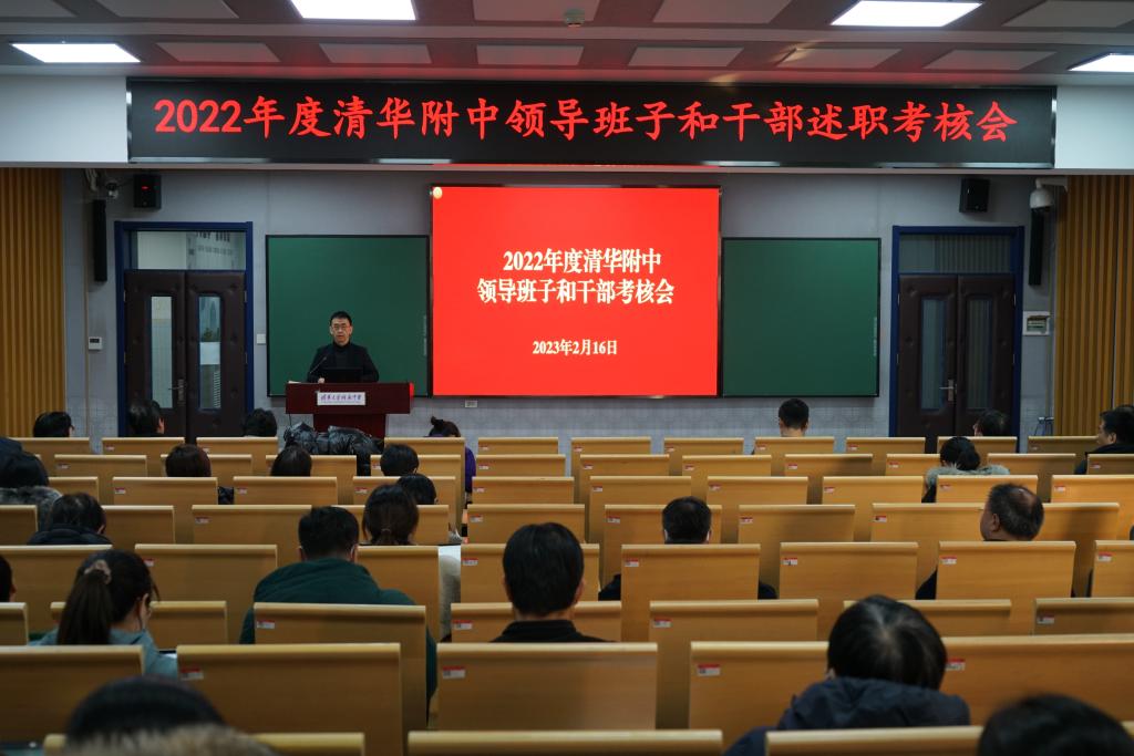 2023年2月16日下午,皇冠体育官网召开2022年度学校领导班子和干部述职考核会。会议由皇冠体育官网党委书记曹海翔主持。皇冠体育官网全体党政班子成员、中层干部、教研组长、年级组长、工会主席、工会副主席、在职党支部书记、民主党派代表、部分办公室负责人及教代表、副高以上教师代表共59人参加会议,清华大学组织部干部教育监督办公室高级主管丁力老师参加了述职会并现场组织了对干部的民主测评。