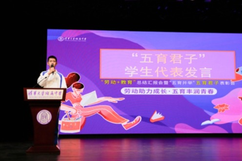 来自皇冠体育初21级的两位学生代表,分别汇报了一年以来的“五育并举”实践和参与劳动教育课程的收获与成果。他们以习近平总书记提出的“德智体美劳全面发展的社会主义建设者和接班人”自勉,从学农团结劳动、公益活动、生活习惯、文明礼仪、体育锻炼等方面,汇报了活动中他们在德、智、体、美、劳等方面的成长与收获。