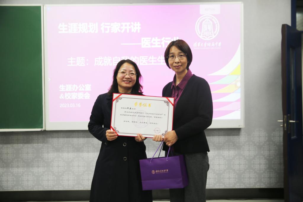 在医学专业专场,来自北京大学第三医院儿科的邢燕医生为同学们带来了题为《成就自我的医生生涯》的精彩讲座。邢医生首先向同学们生动讲述了自己进入三甲医院工作的坎坷历程,她的经历让我们看到了医生培养的不易,也让同学们明白了对自己未来生涯发展规划和辛勤付出的重要性。其次,她介绍了医学职业的内涵,她认为医生是一个极具多样性的职业,医生的职能包括治病救人,教书育人、科学研究以及参与医疗管理和社会公益。随后她从对人和对己两方面阐发了自己对于医学职业价值的看法。最后,邢医生简要介绍了中国目前的医学职业体系包括医学教育模式和医生培养,并希望同学们能够感恩当下的生活,努力学习,坚持医学梦想,实现人生价值!